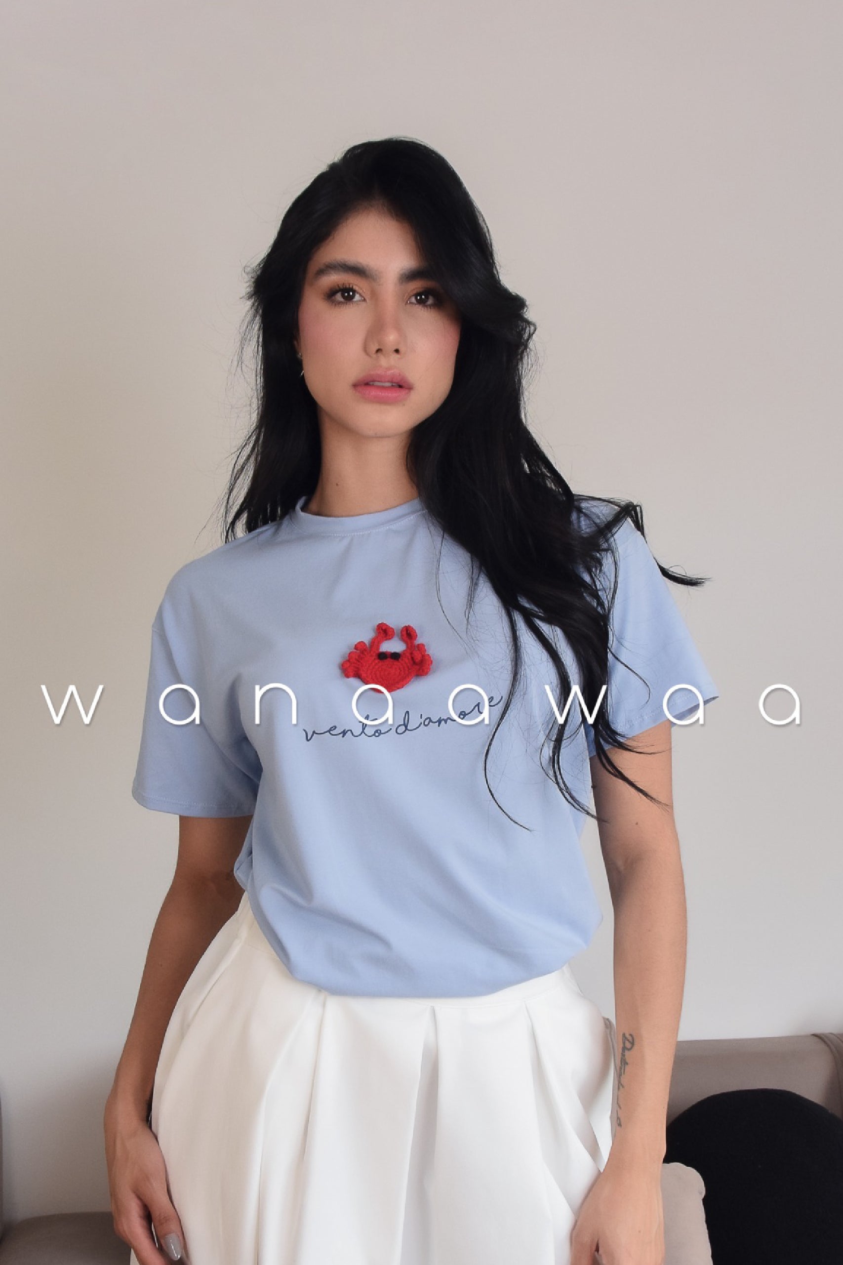 Camiseta oversize estampada. Contiene aplique de cangrejo bordado por personas privadas de la libertad de la Cárcel Distrital de Bogotá.