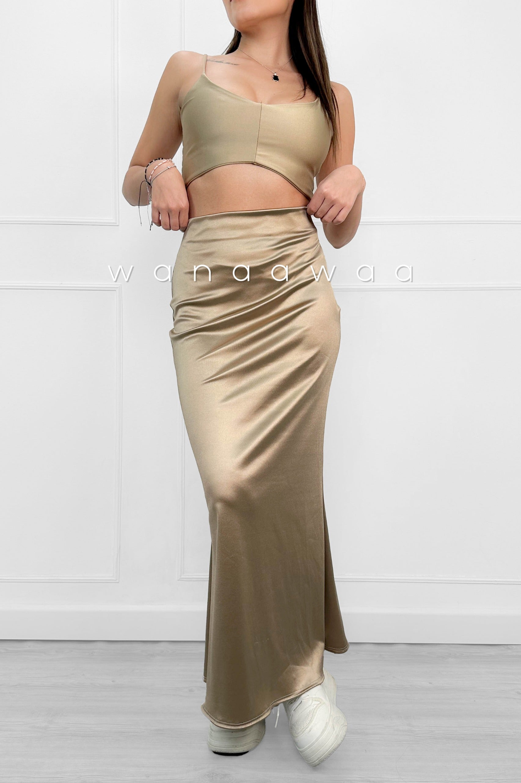 Falda larga satinada.