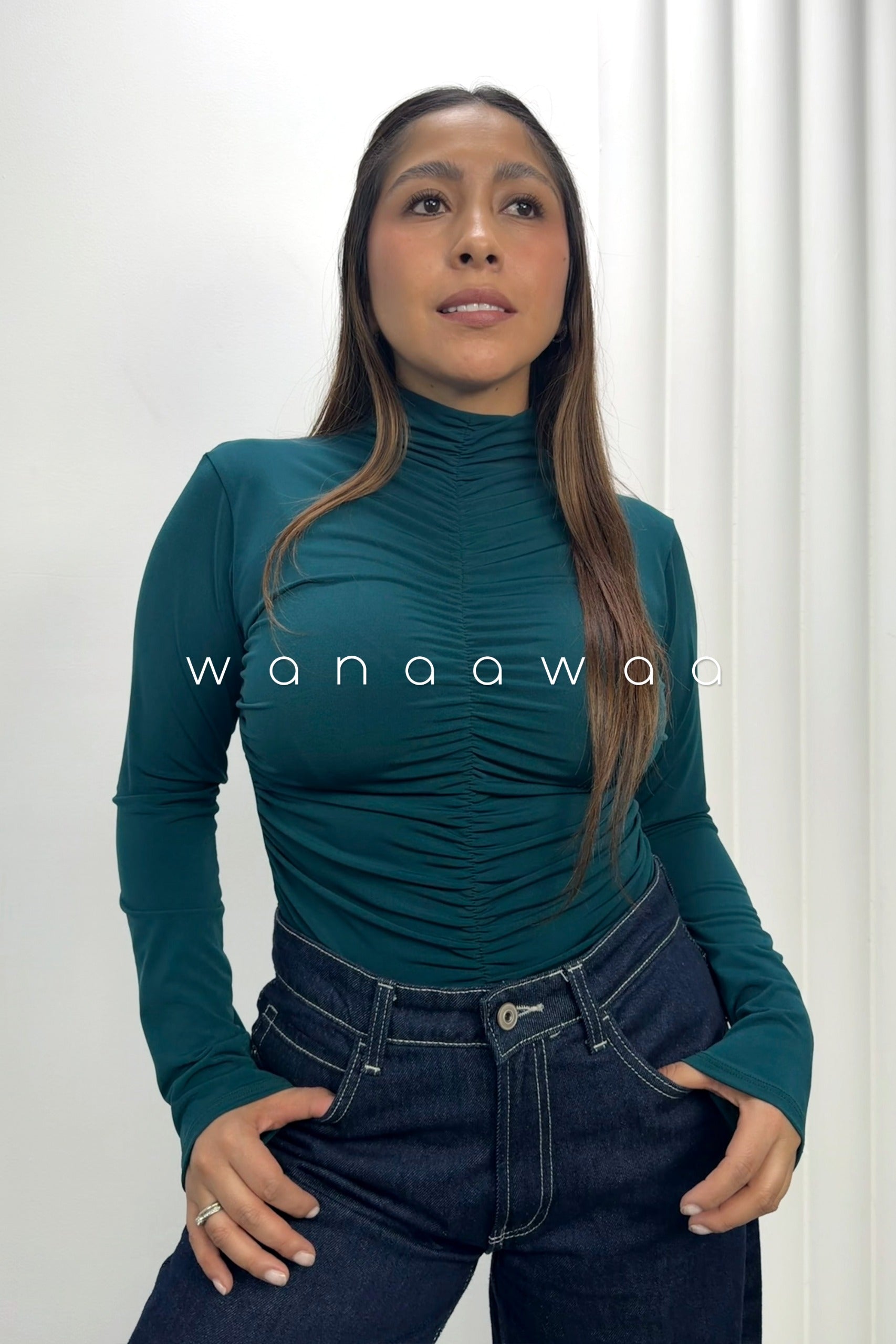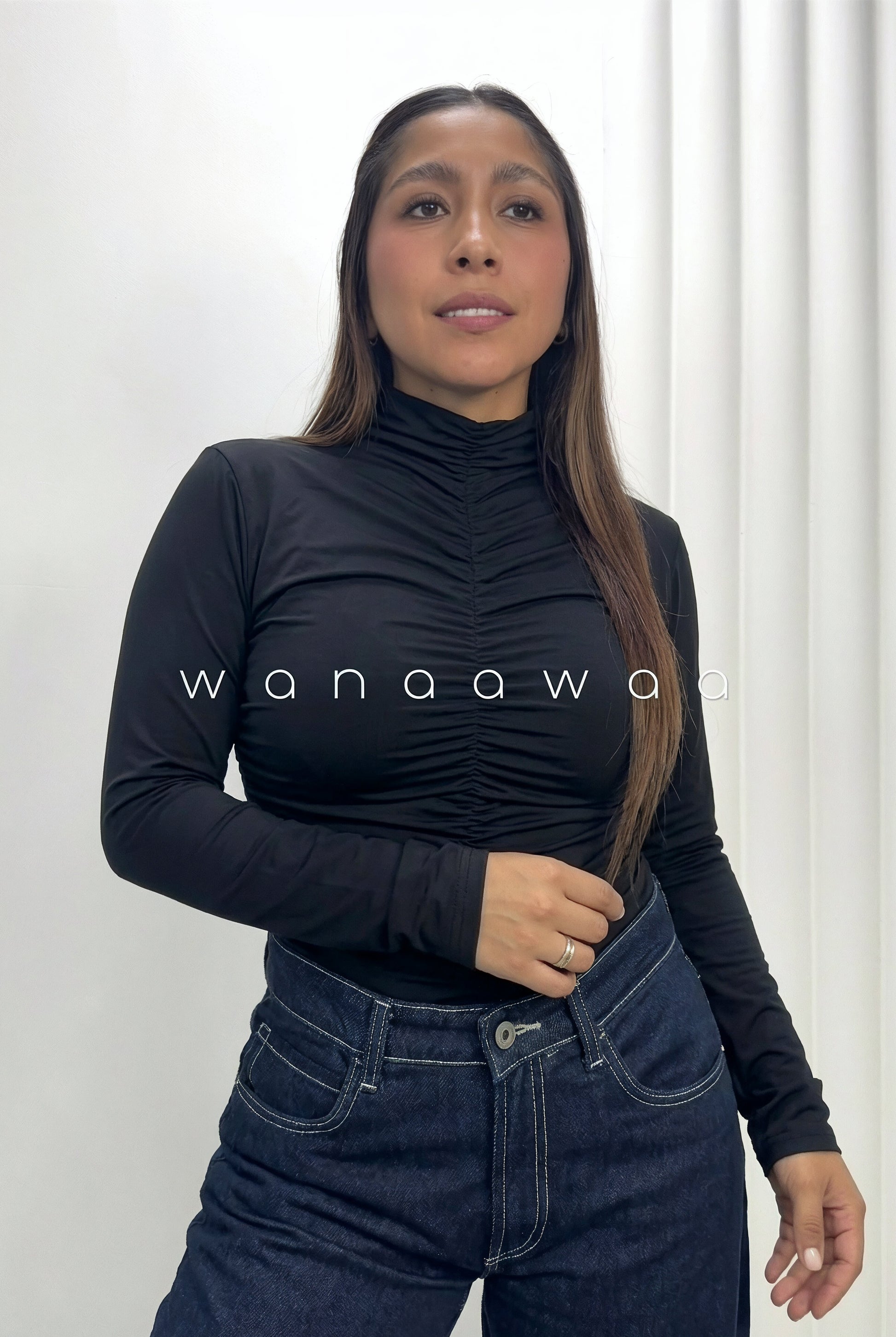 Blusa manga larga con fruncido.