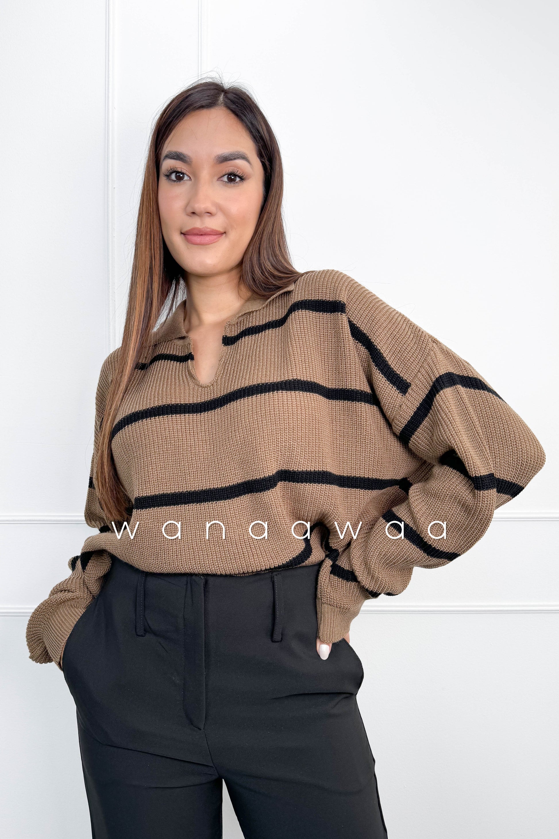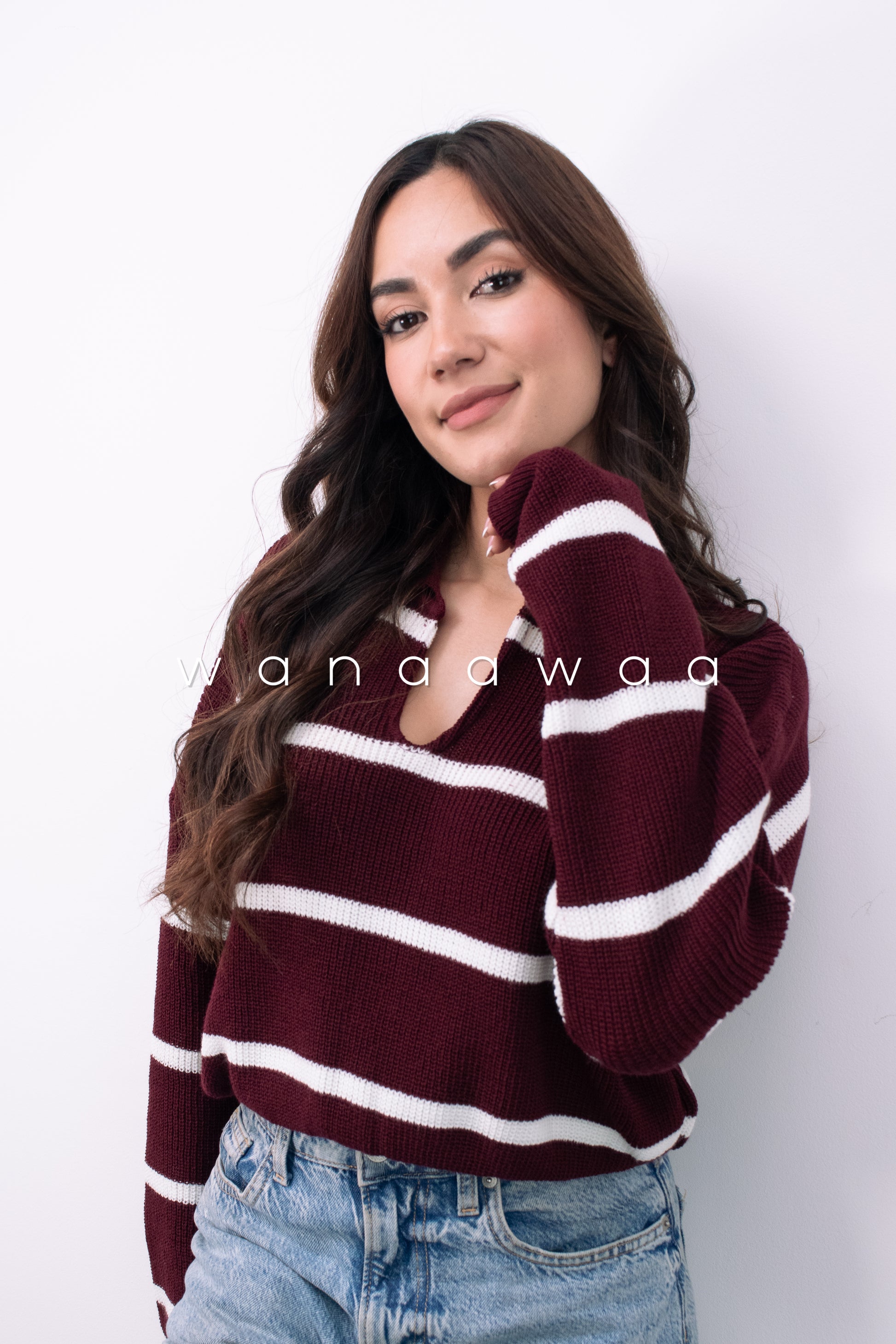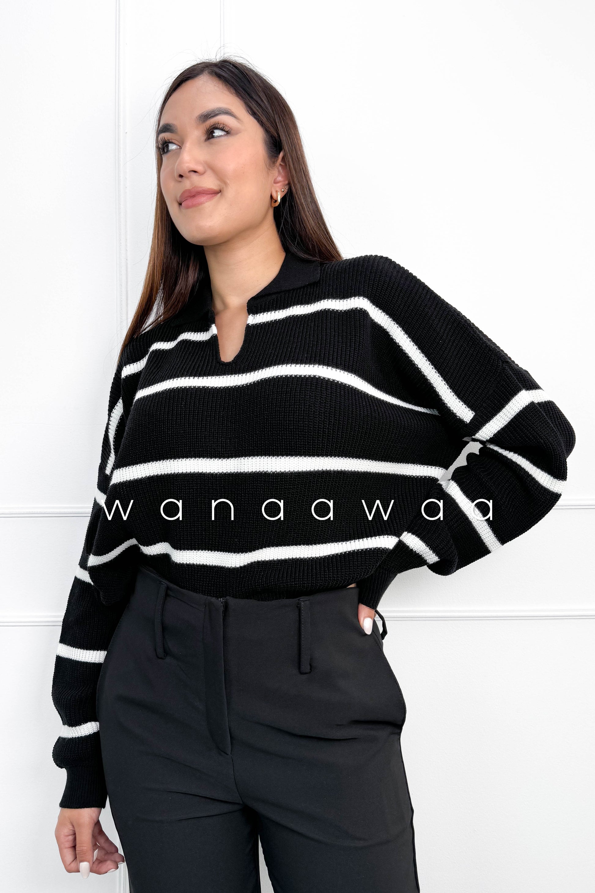 Tejido crop cuello polo con rayas.